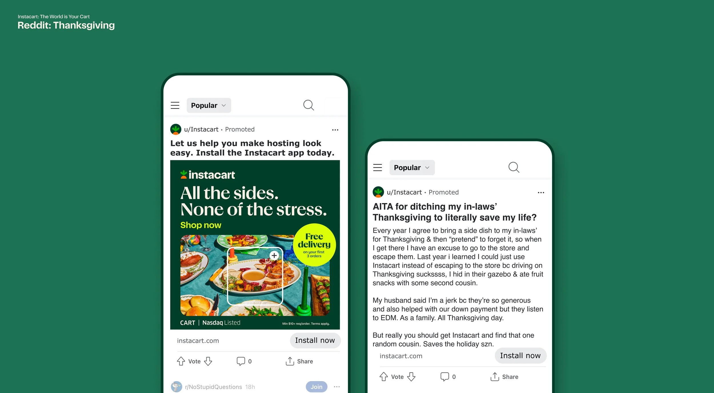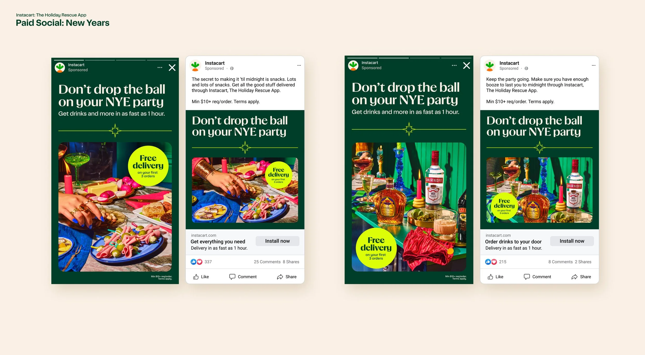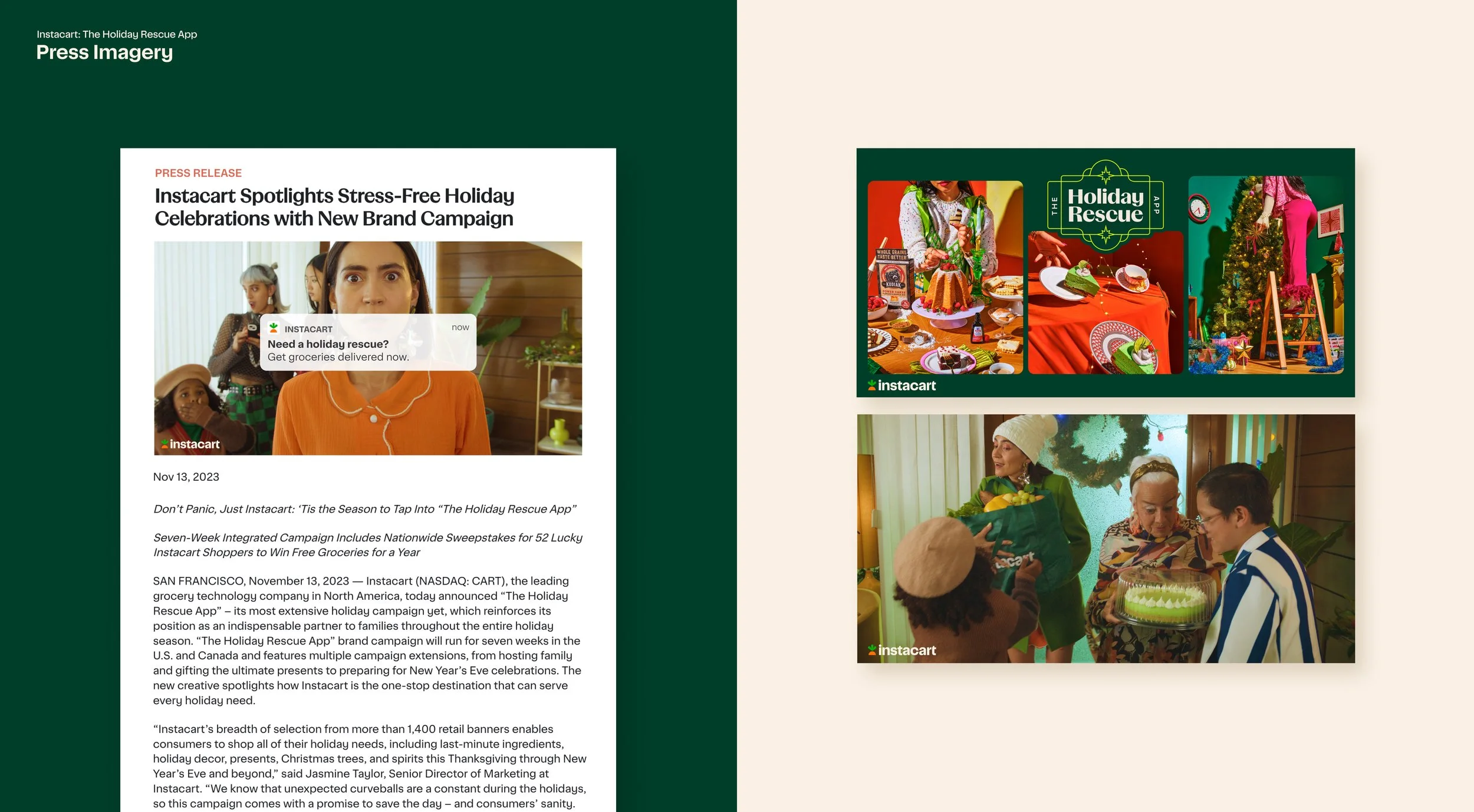 For the 2023 holiday season Instacart launched it’s most extensive holiday campaign to-date. The campaign ran for seven weeks in the United States and Canada, and features various messaging extensions, from hosting family and giving the ultimate presents to preparing for a New Year’s Eve party, with Instacart portrayed as the one-stop destination that can meet every seasonal need.